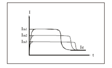 2)限流啟動:當電機起動時,其輸出電壓值迅速增加,直到輸出電流達到設定的電流現幅值Im,如圖2所示。并保持輸出電流不大于該值,電壓逐漸升高,使電動機逐漸加速,當電動機接近額定轉速時,輸出電流迅速下降額定流Ie以下,完成起動過程。