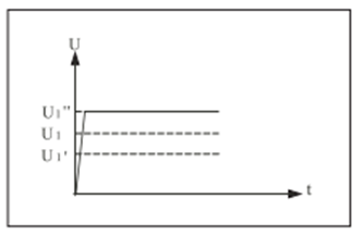 3)點動控制模式:該方式控制下,軟起動器的輸出電壓迅速增加至電動電壓U1并保持不變,改變U1的設定值,可改變電動機點動時的輸出電壓及輸出轉矩,圖3所示,該功能對試車判斷電機轉向或一些負載的定位風場方便。