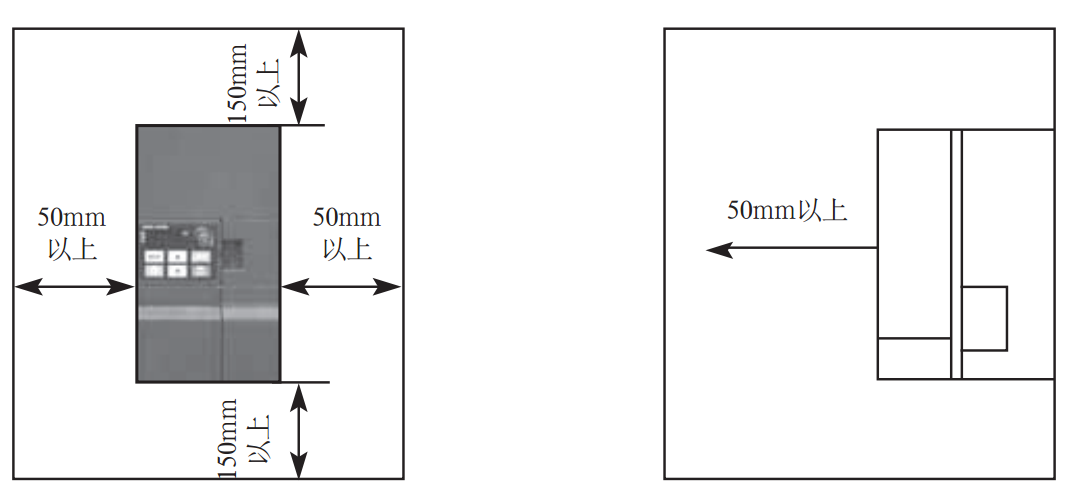 b、多臺變頻器安裝在同一控制柜內,注意留有足夠的空間的同時,還要注意柜內的空氣對流,注意散熱風扇的安裝。